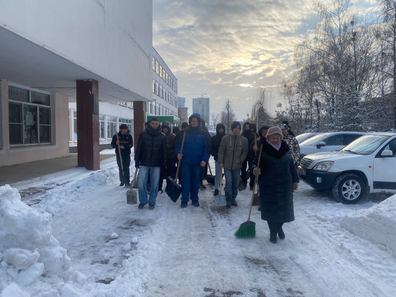 ❄️Несмотря на зимнюю погоду и обильные снегопады, наши студенты не остались в стороне и дружно вышли на расчистку территории вокруг колледжа.
