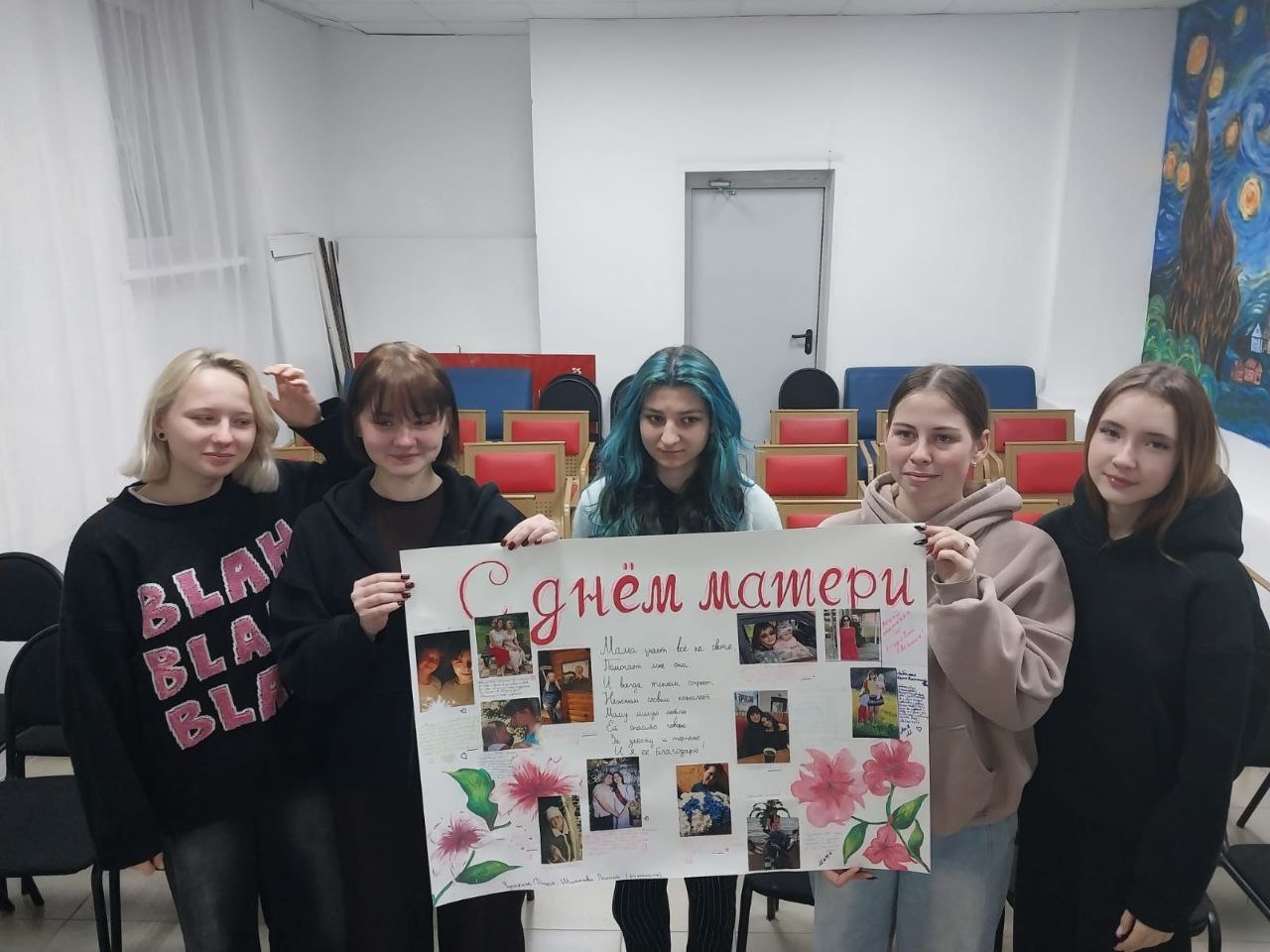 Студенты, проживающие в общежитии, показали свою креативность и заботу, создав замечательные плакаты в честь самого нежного праздника — Дня Матери.
