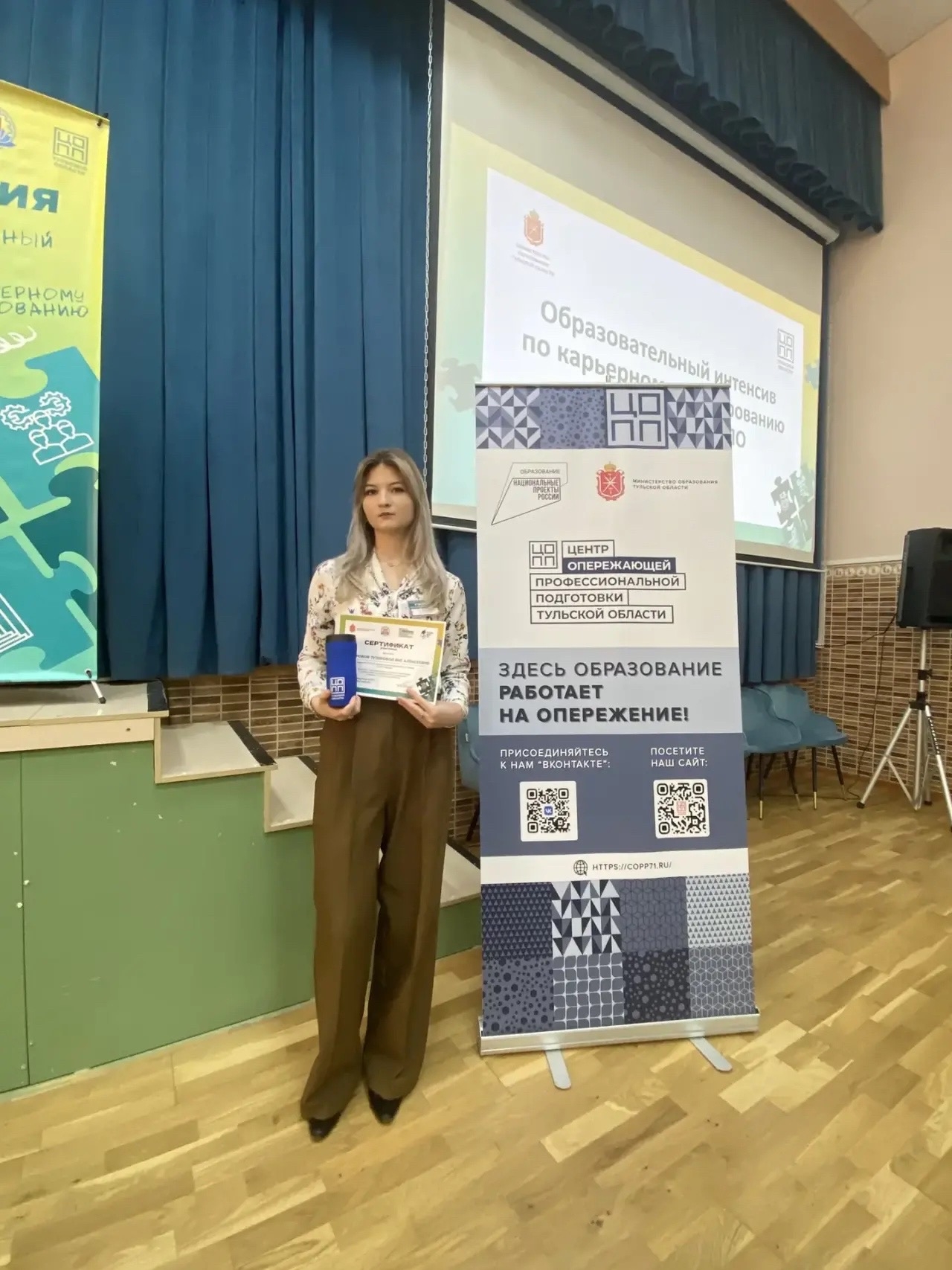 28 апреля на базе ГПОУ ТО "ТКСиОТ" прошел заключительный этап образовательного интенсива по карьерному планированию для обучающихся учреждений СПО. Команде нашего колледжа по специальности "Агрономия" вручили сертификат и памятные подарки.